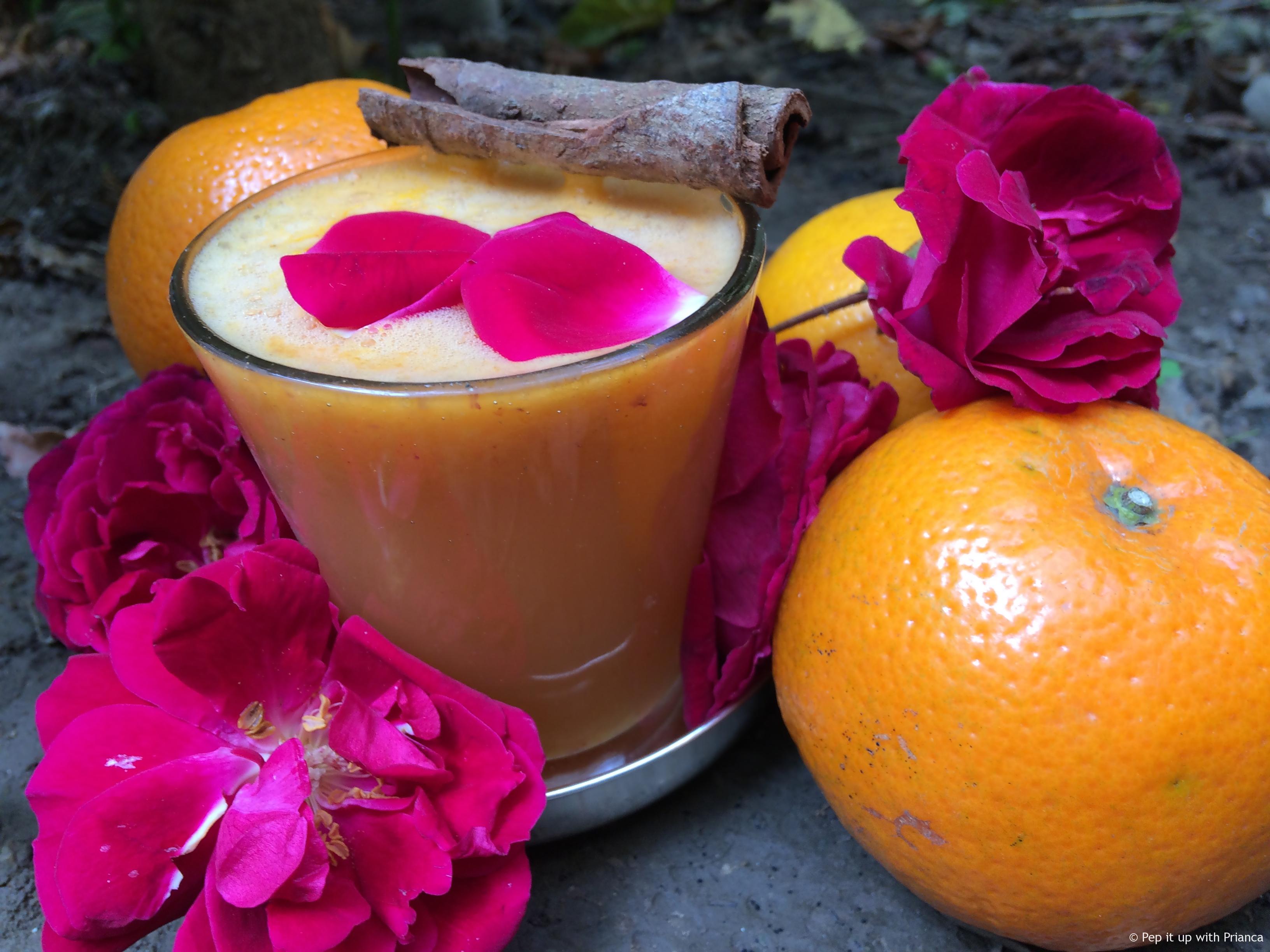 Add 3 oranges to the juicer with 1 cinnamon stick and 10 rose petals. And in 30 sec, you will get a super cooling and peppy drink. Serve with crushed ice. However, there are many good and healthy juices available in the market. Click on this link to buy now.