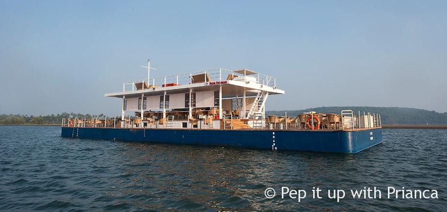 It was late afternoon, i was enjoying a large piece of ‘Tiramisu’ with icy coffee at Britto’s, Baga beach Goa. I over heard someone talking about a big luxurious lounge floating on the river Chapora near Morjim turtle beach road.